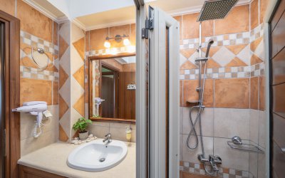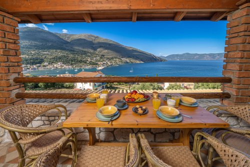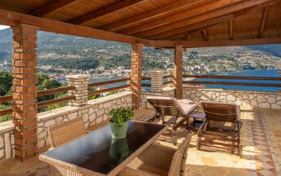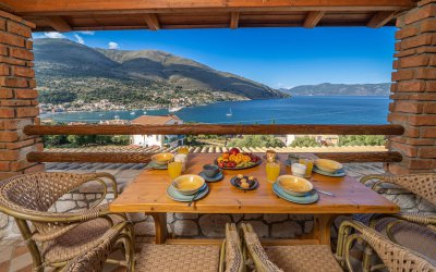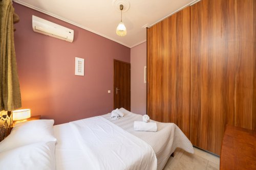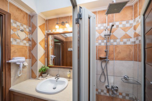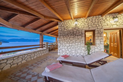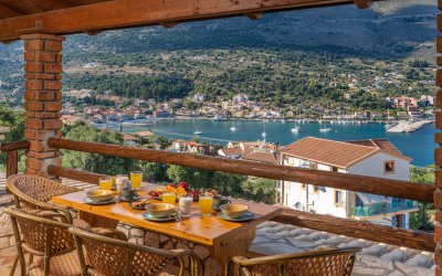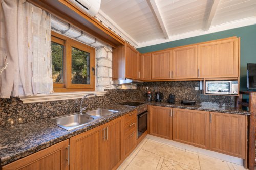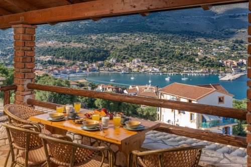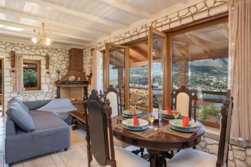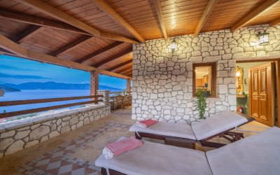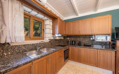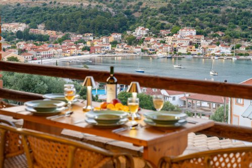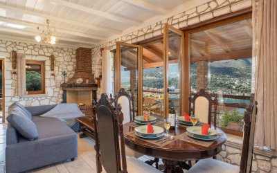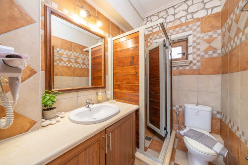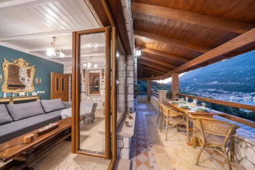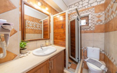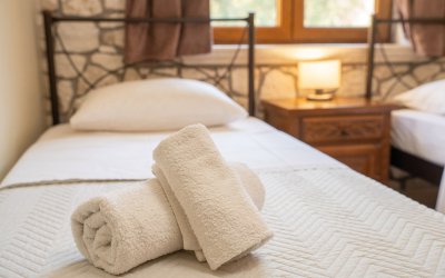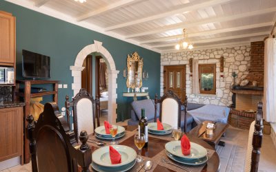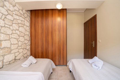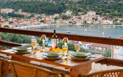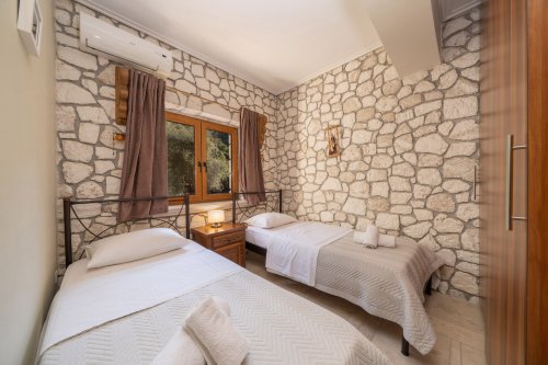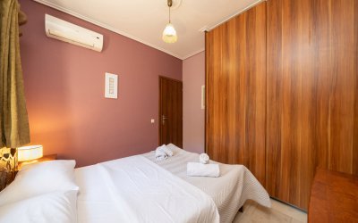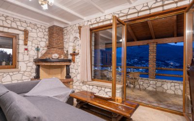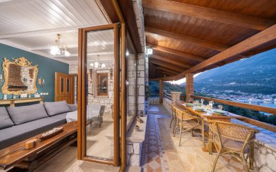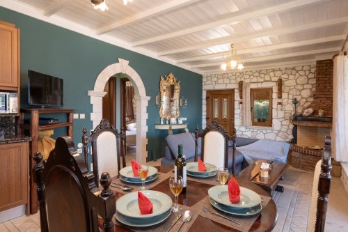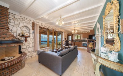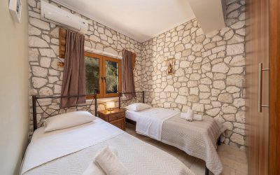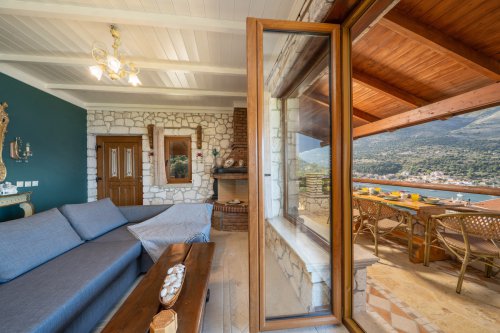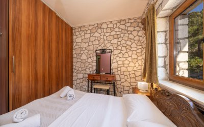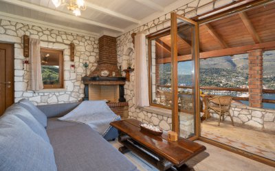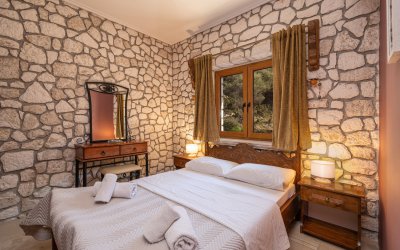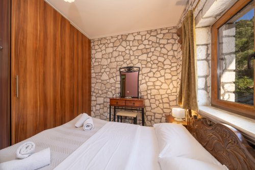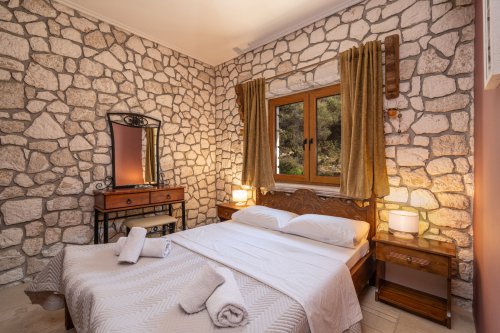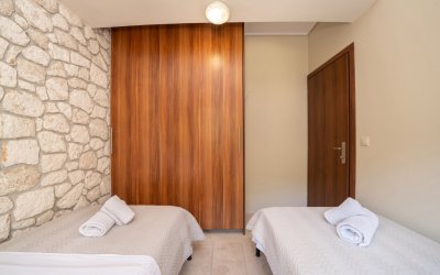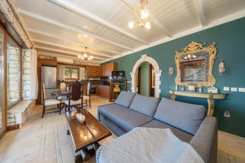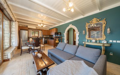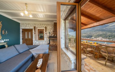 Warm, inviting, and bathed in natural light, the Penthouse Apartment welcomes you into a space where rustic charm meets understated elegance. Featuring two comfortable bedrooms — one with a queen-size bed and one with twin beds — and an open-plan living area with high wooden ceilings and exposed stonework, the apartment offers a calming, homely atmosphere. The living space includes a cozy sitting corner, a fireplace, and a fully equipped kitchen with a dining area that blends functionality with a warm, handcrafted feel. The highlight of the apartment is its expansive private terrace, offering uninterrupted, panoramic views of the sea, the surrounding hills, and the traditional rooftops below. Whether you're enjoying breakfast under the morning sun or gazing at the shimmering water in the evening light, the view becomes part of your everyday rhythm. The décor is simple yet thoughtful, with natural materials, earthy tones, and vintage-inspired touches that give the apartment a timeless character. Ideal for guests seeking peace, comfort, and beauty in every detail